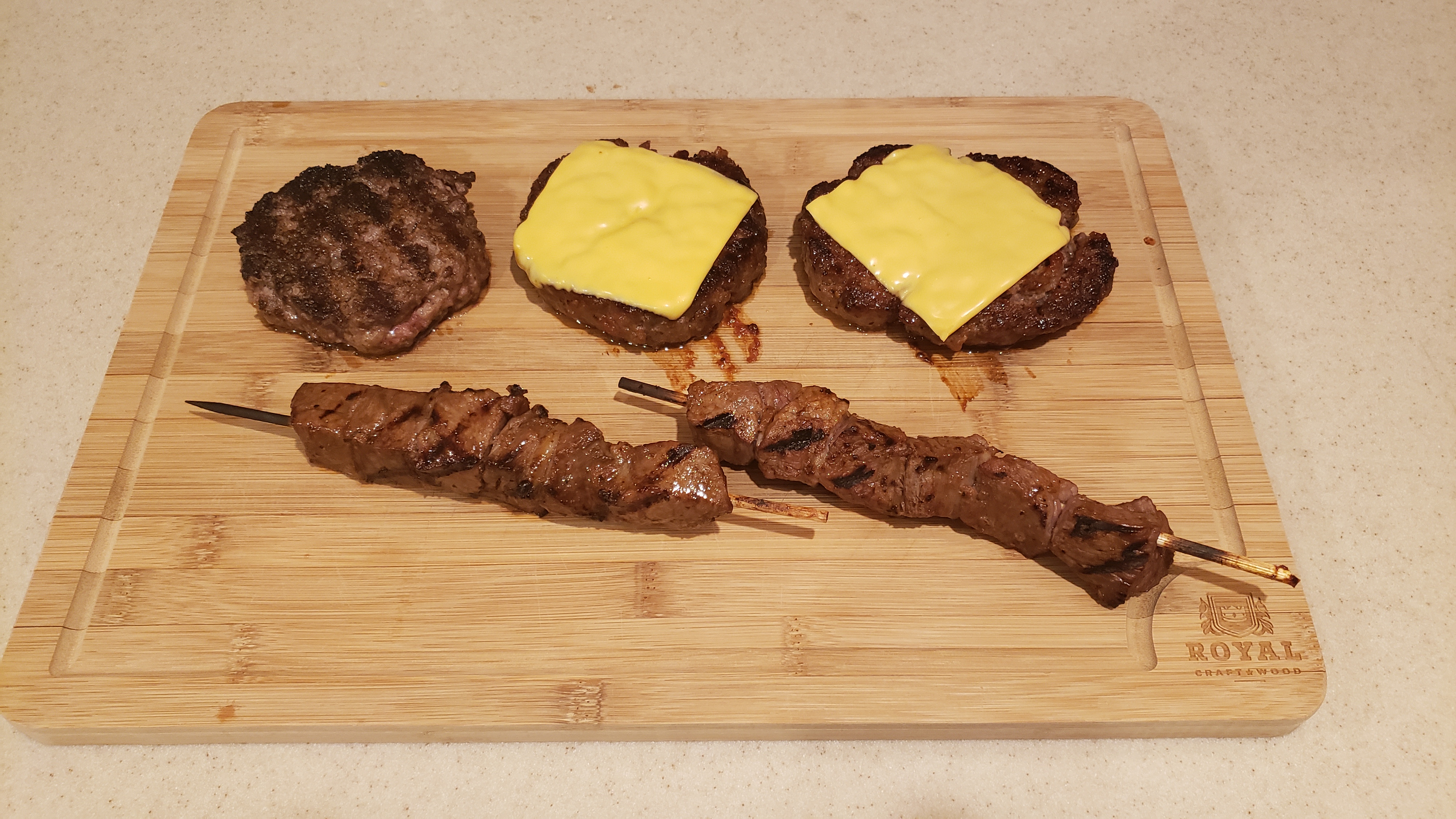 Grilled Burgers from Butcher Block, and kobe beef skewers